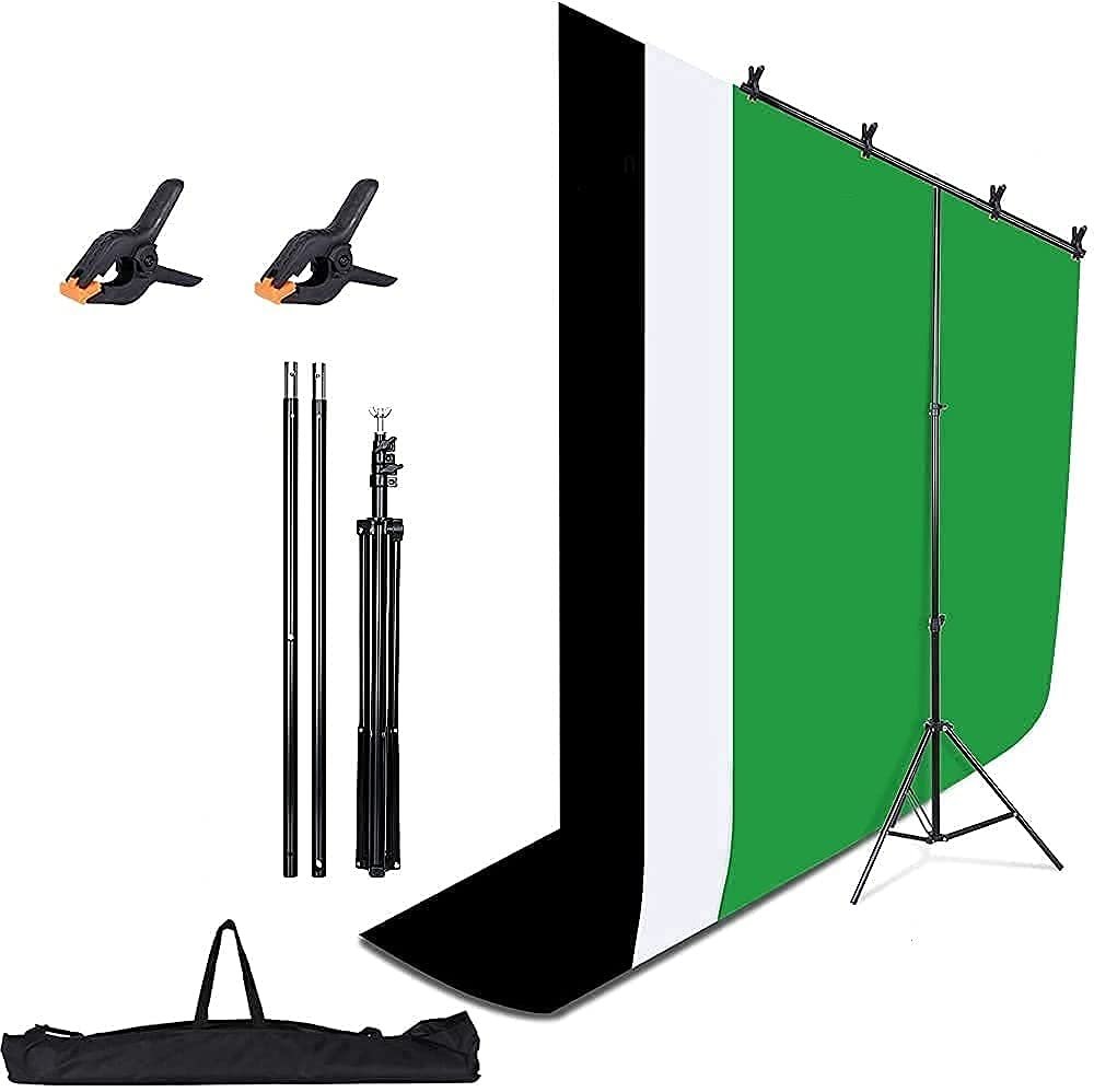 Hiffin 8×12 ft Green Screen Backdrop with Stand – Includes 3 Photography Backdrops (Black, Green & White, 6×9 ft each) and 6.5 ft T-Shape Stand